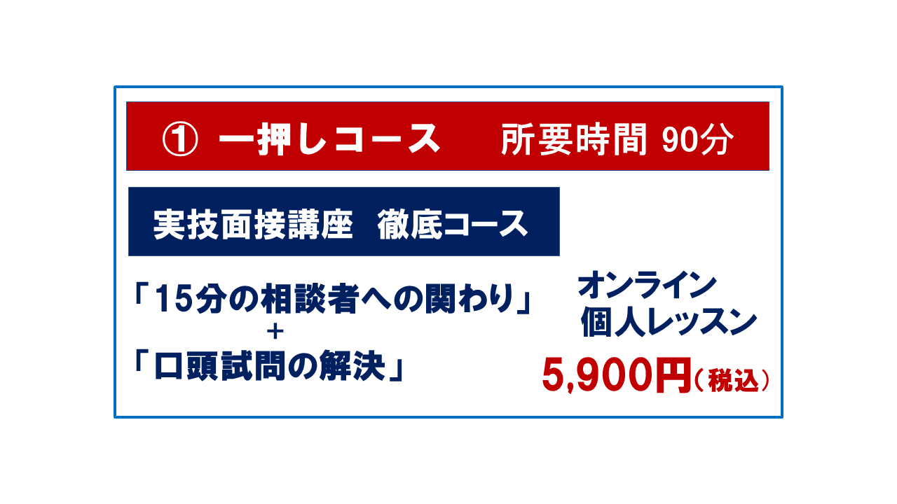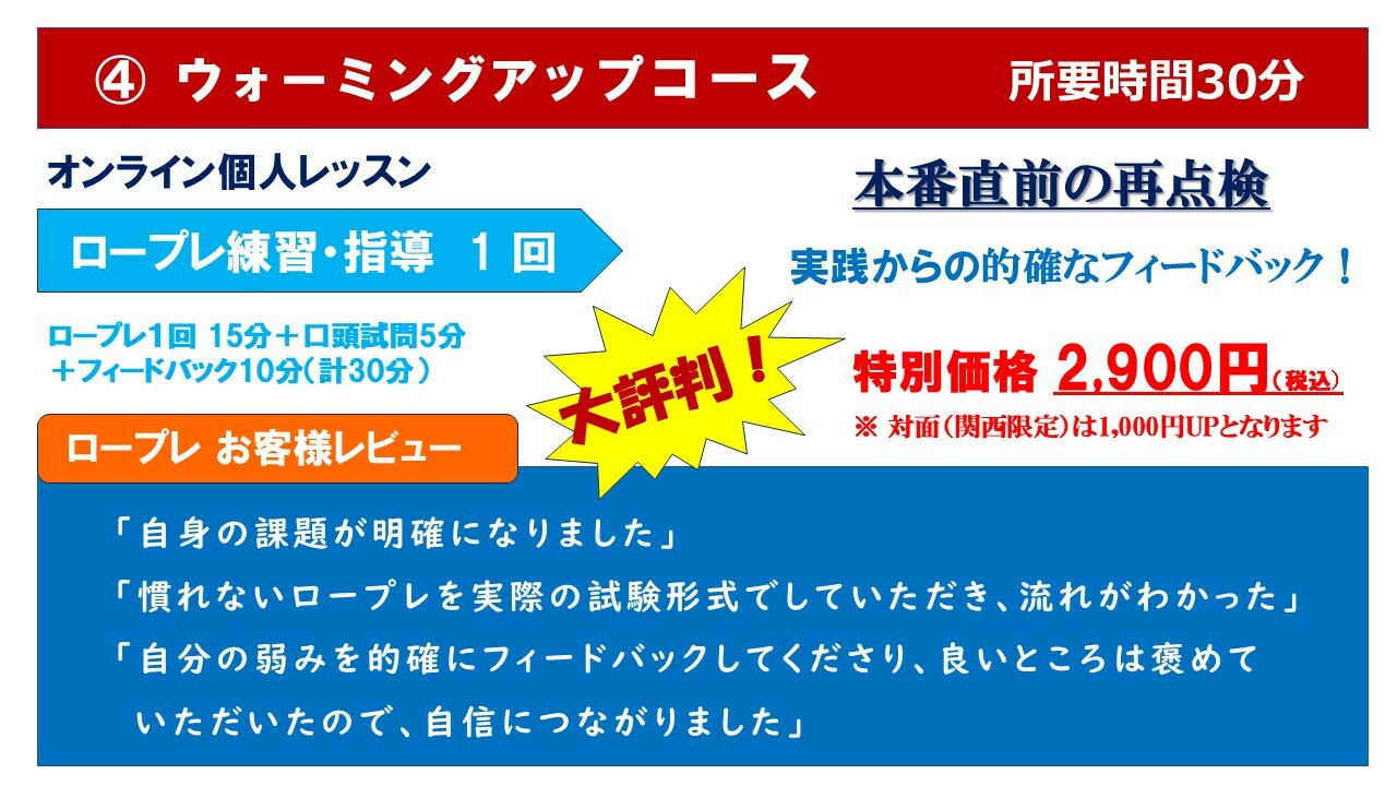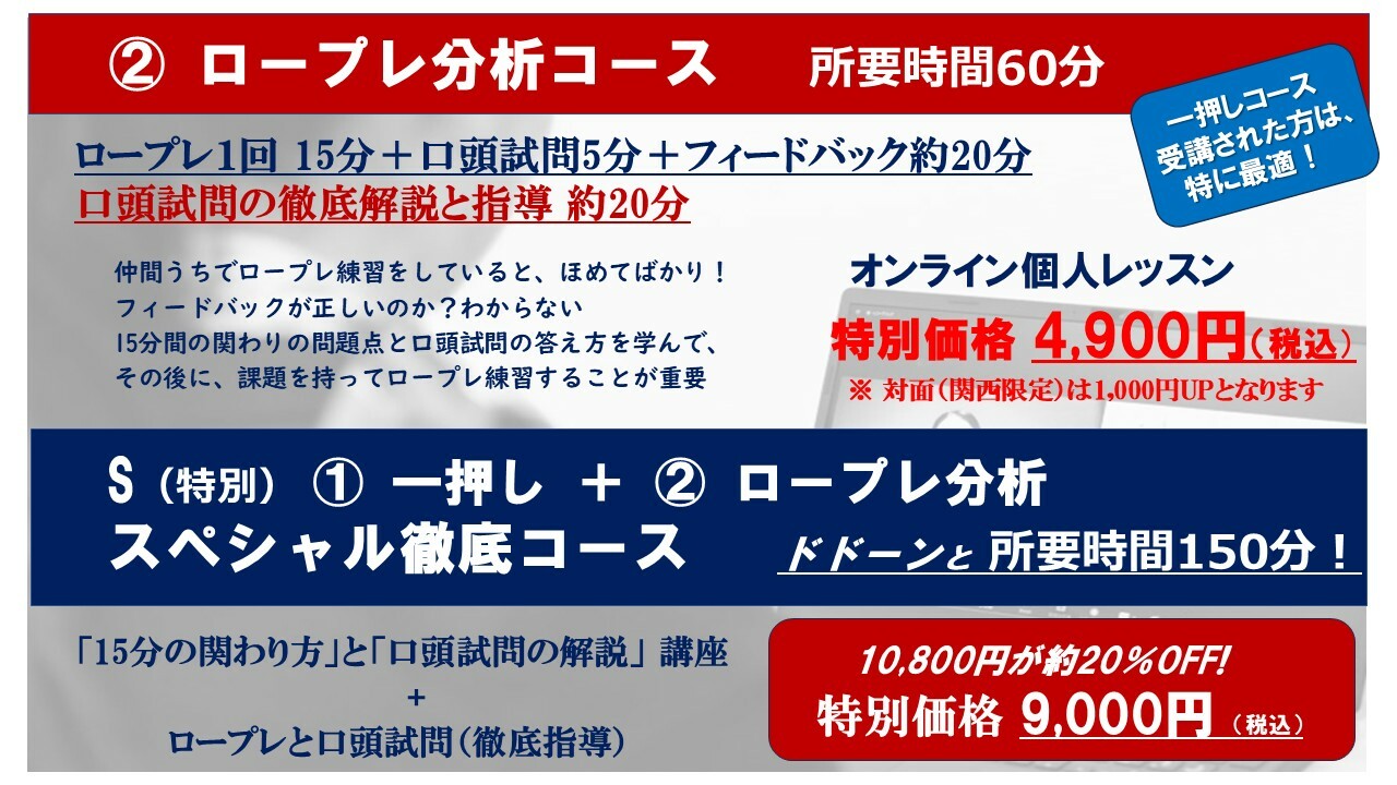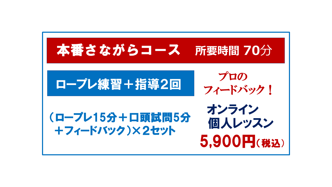 【2月限定特別企画】ロープレ マンツーマン 6回コースオンライン約240分¥19900約1ヵ月で実技面接試験をマスター