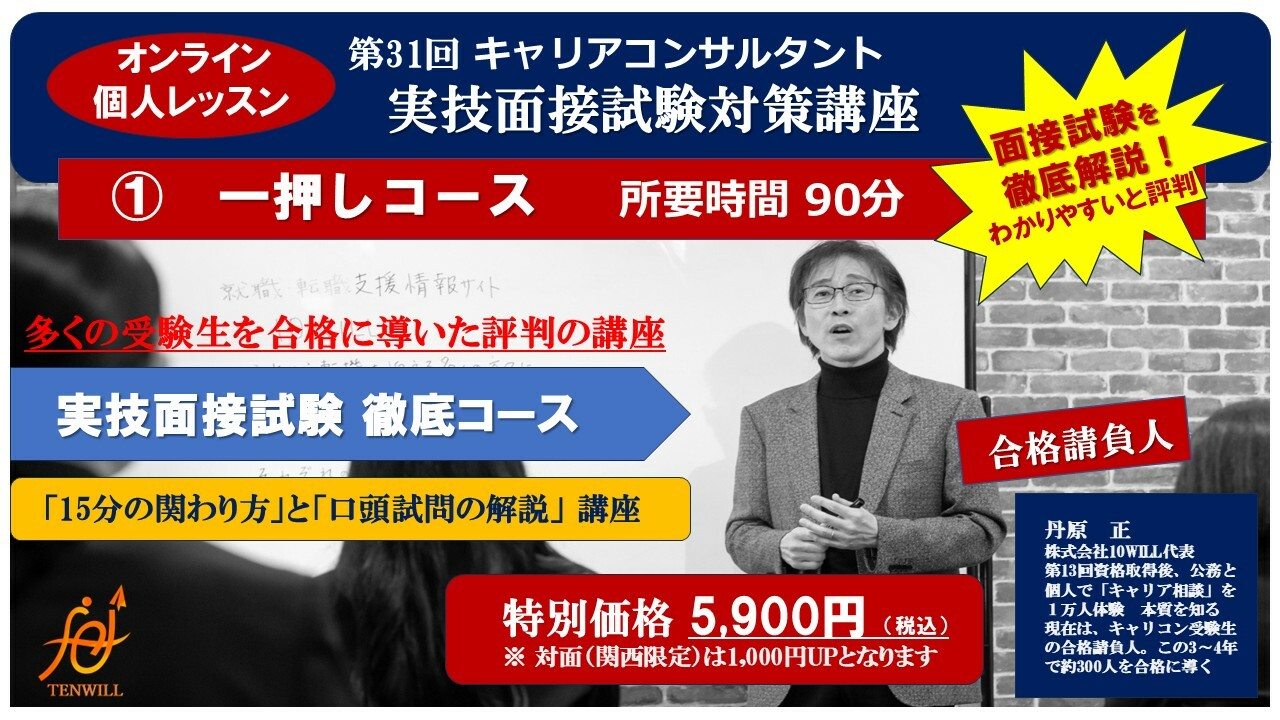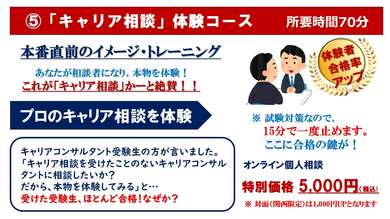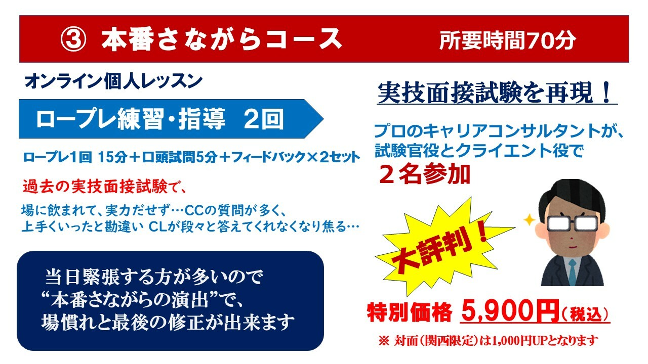 「キャリアコンサルタント実技試験対策講座」★対面追加料金対面0000分¥1000対面の場合「どのコースにも」