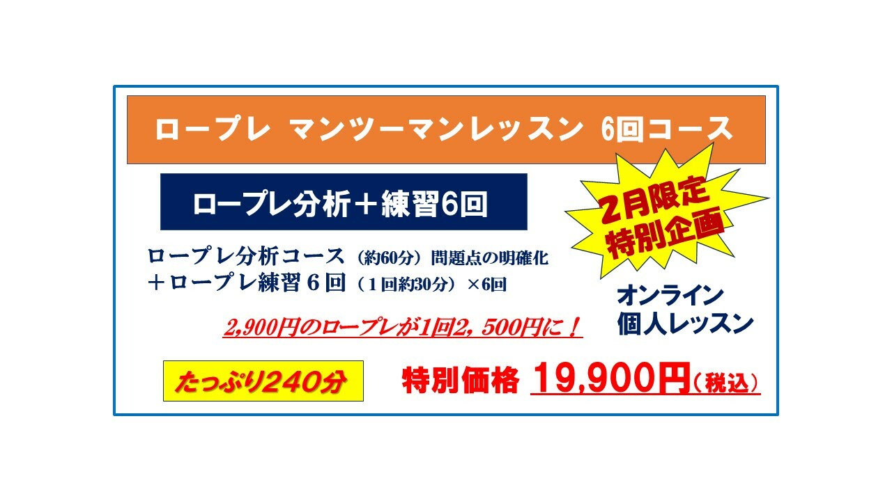 ご連絡くださいませ。★講座お申し込みはコチラ【2月限定特別企画】ロープレ マンツーマン 6回コースz19900 -